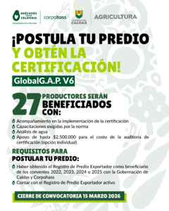 Postula tu predio al convenio que Corpohass desarrolla junto a la Gobernación de Caldas y obtén la certificación GlobalG.A.P. V6